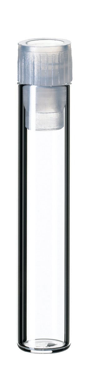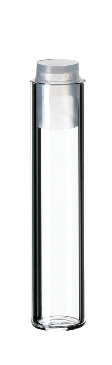 1ml Shell Vial, 40x8.2mm, clear glass, 8mm PE Plug, transparent (with insertion barrier)