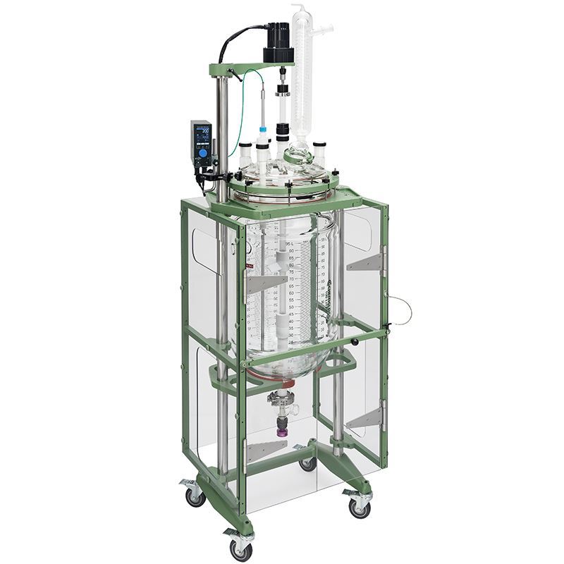 100L PROCESS REACTOR SYSTEM, SQUATTY, CYLINDRICAL, JACKETED, GLASS, 400MM FLANGE, BRUSHLESS DC ELECTRIC MOTOR